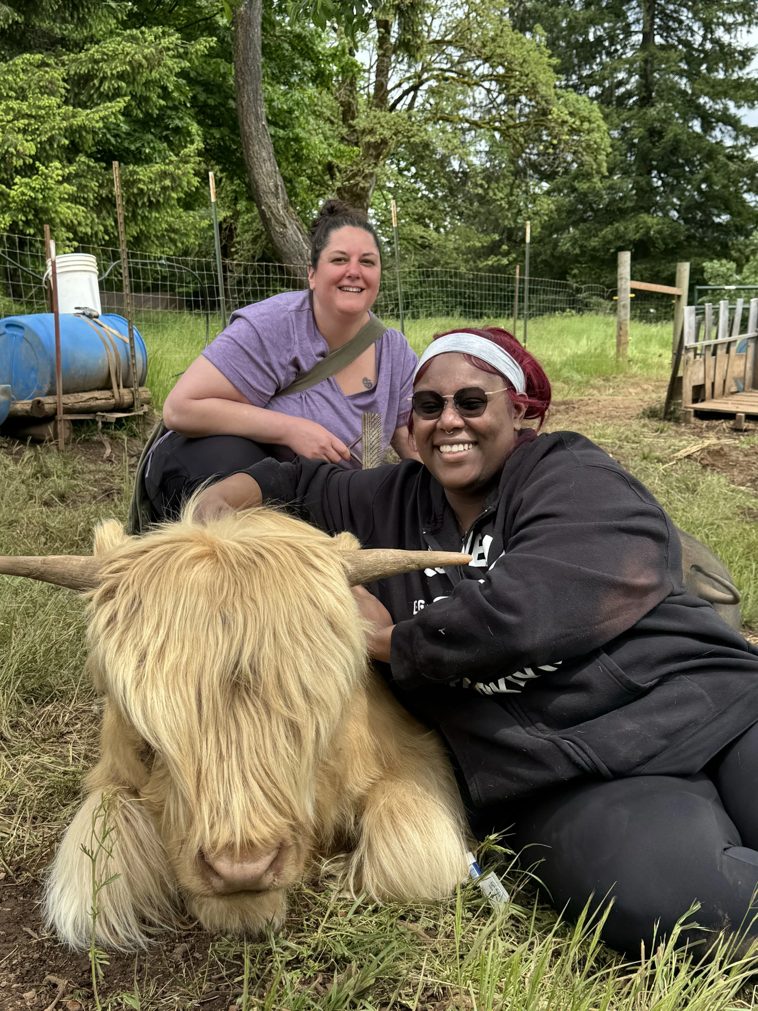You will be able to dive into a fun experience with us where you can snap some cool photos, enjoy brushing, petting, snuggling, walking, petting, and interacting with our sweet Highland Calf Marshmallow and see our newborn Silver Dun Baby Boy. While you're welcome to bring a professional photographer, many of our guests love having a friend capture these memorable moments just as much.
